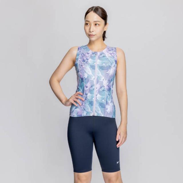 ナイキ レディース 総柄ジップ付き袖なしセパレーツ スイムウエア スイミング 水泳 フィットネス水着 グレー ブルー 青 パープル 灰色 紫 送料無料 NIKE 2993130