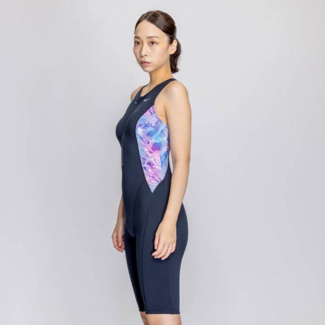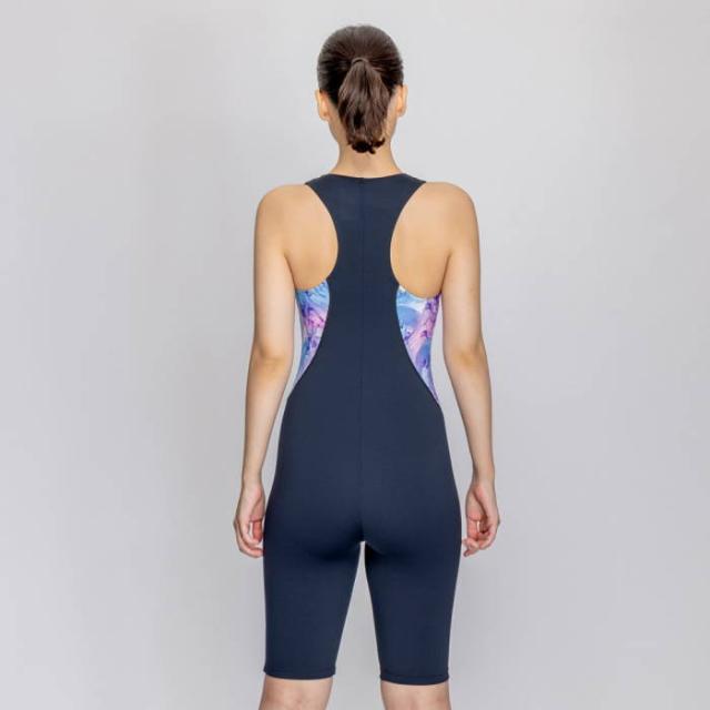 上下一体型のレッグスーツは水中での動きに合わせてストレッチするため運動に最適。