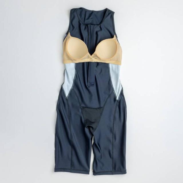 泳ぎやすくて着替えもしやすいフィットネス水着。ジッパー付きで着脱カンタン。