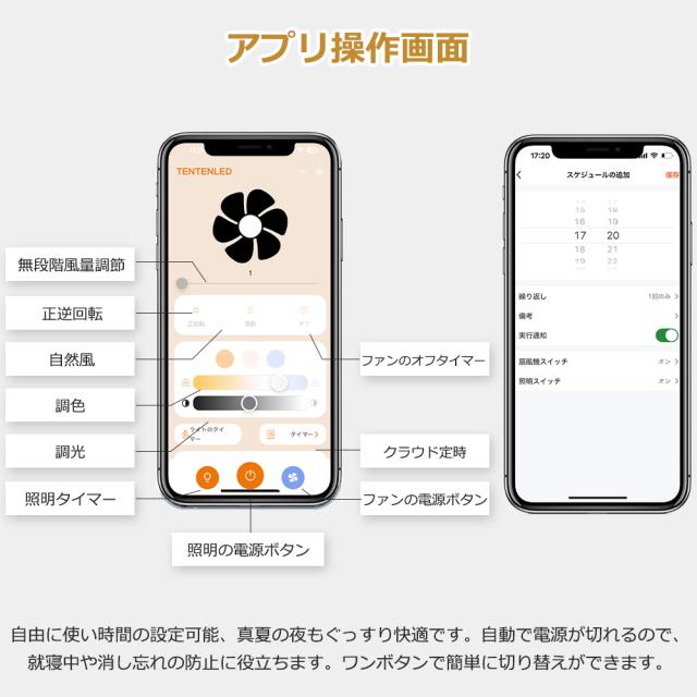 風量調整:スマホで無段階調整/リモコンで5段階調整