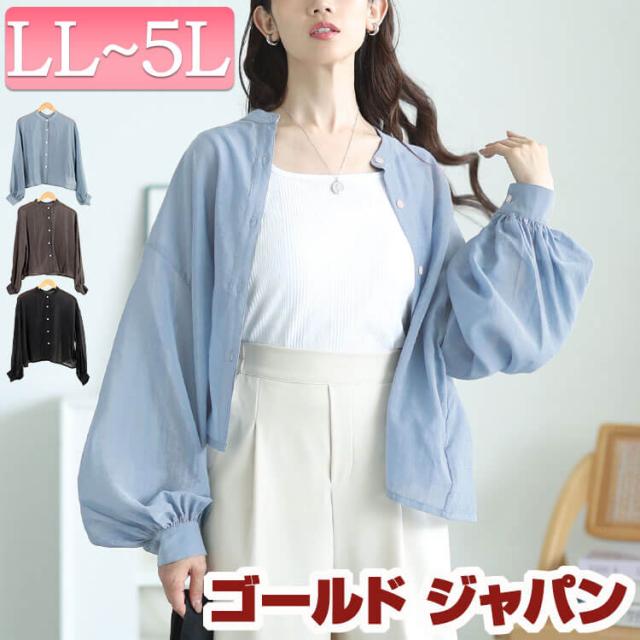 冬新作 大きいサイズ レディース トップス ブラウス シャツ ボリュームスリーブクロップドシアーブラウス シアーシャツ 長袖 シアー クロップド ワイド シアー 透け感 ボリュームスリーブ ゆったり 夏服 秋服 春服 LL 2L 3L 4L 5L ブラック 黒 ブルー モカ ゴールドジャパン
