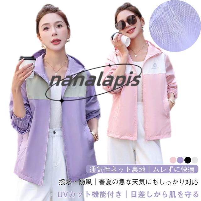 春夏 防水防風 フード付き アウター パーカー 薄手 レディースジャケット マウンテンパーカー UVパーカー レディース レディースジャケット 日焼け対策 アウトドア用 4色