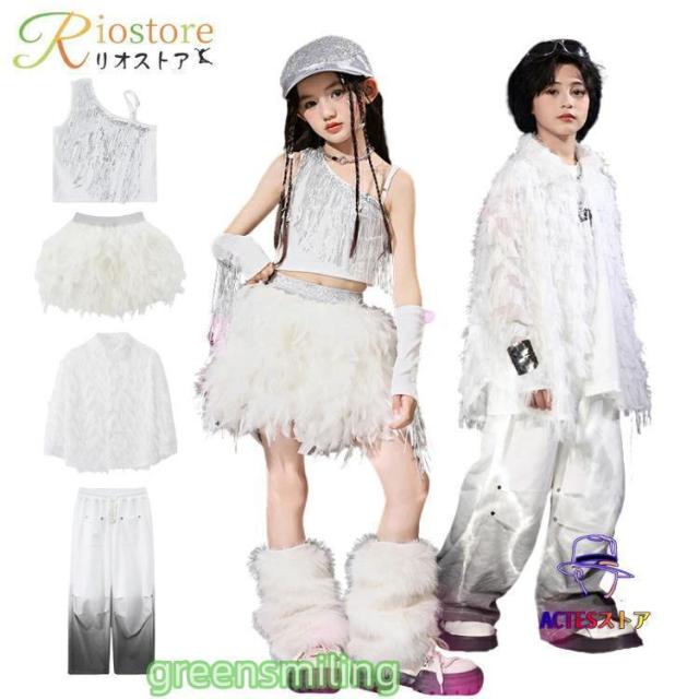 シルバー キッズダンス 衣装 女の子 男の子 ヒップホップ 白 ホワイト パンク風 子供服 トップス パンツ 子供ダンス 衣装 キッズダンス衣装 セットアップ ステ