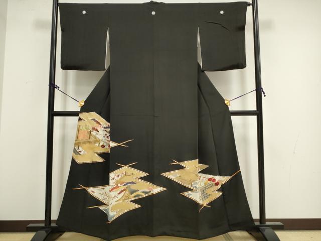 平和屋着物■豪華黒留袖 駒刺繍 松川菱風景文 金彩 正絹 逸品 DAAU1812xg