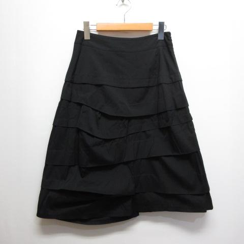 【中古】スチェッソ SUTSESO ティアード 台形 スカート 40 黒 ブラック 裏地付き レディース