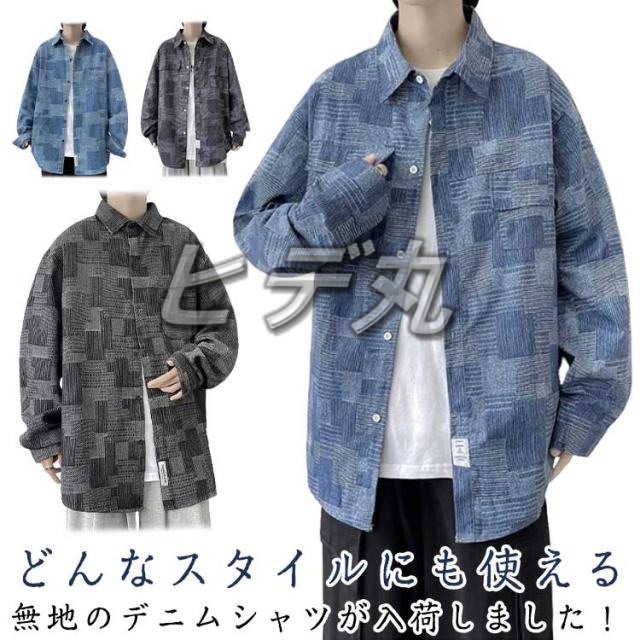 シャツ パッチワーク 大きいサイズ ワークシャツ メンズ アメカジ ヒューストン デニムシャツ 長袖 羽織り デニムシャツ 長袖シャツ 無地 デニムジャケット 立体感 配色ステッチ ワーク ミリタリー ナチュラル ストリート