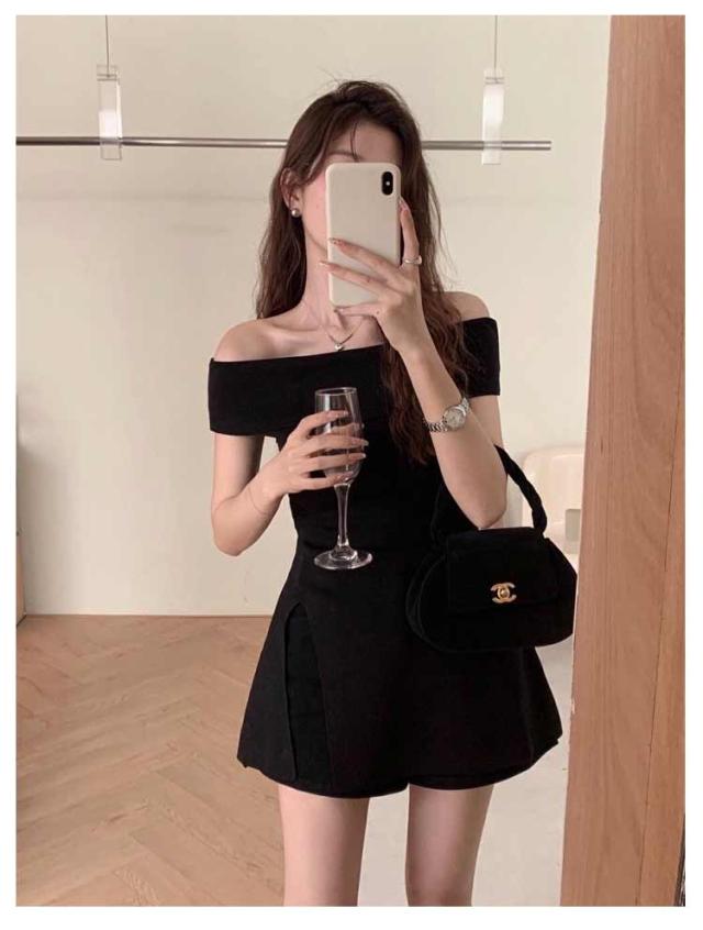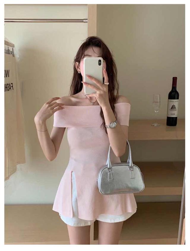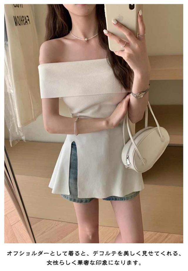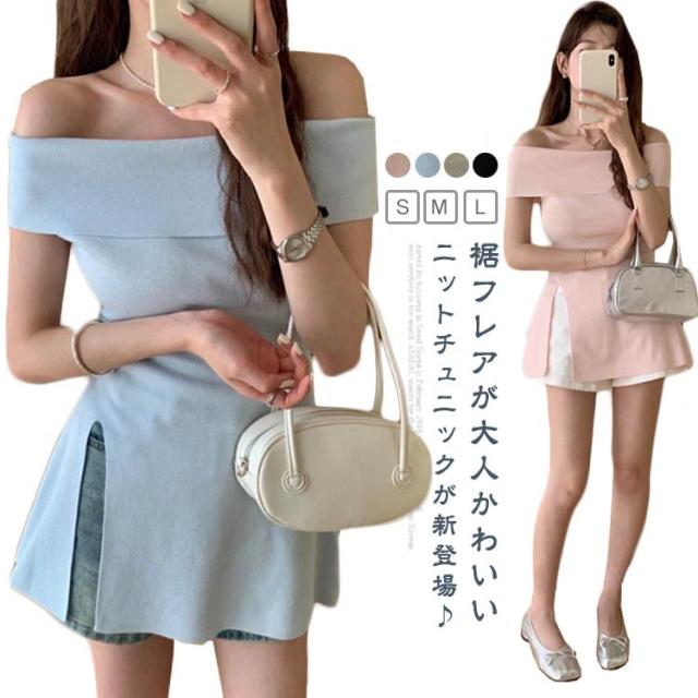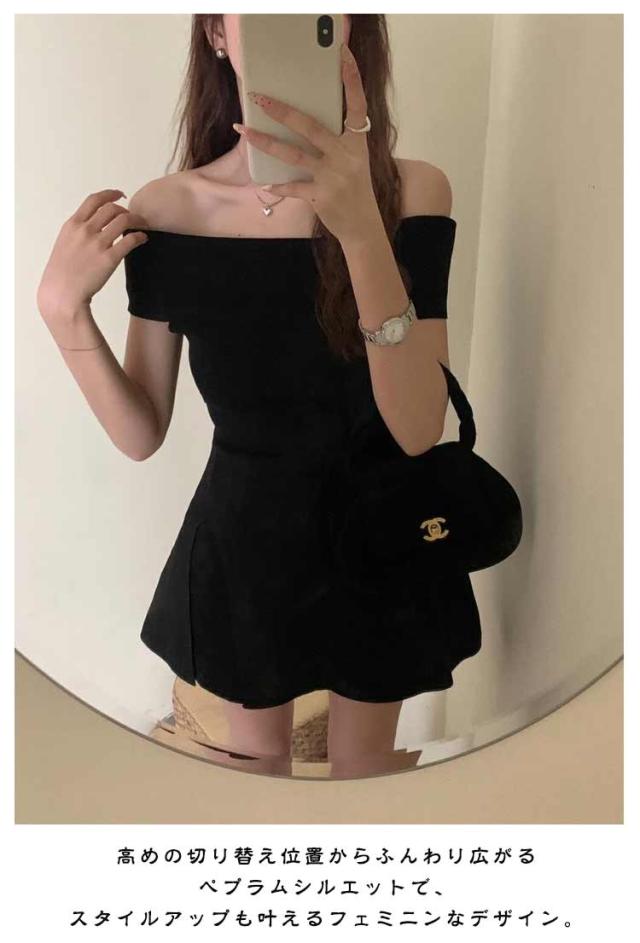 トップス フレア オフショルダー 半袖 リブニット 肩出し サマーニット セーター オフショルダー トップス オフショルダー スリムフィット プルオーバー ペプラムトップス リブ おしゃれ きれいめ ブラック ベージュ ブルー