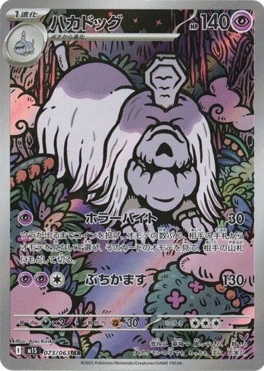 収録:メガシンフォニア コレクションナンバー:073/063 種類:ポケモン タイプ:超 カード名:ハカドッグ レアリティ:AR