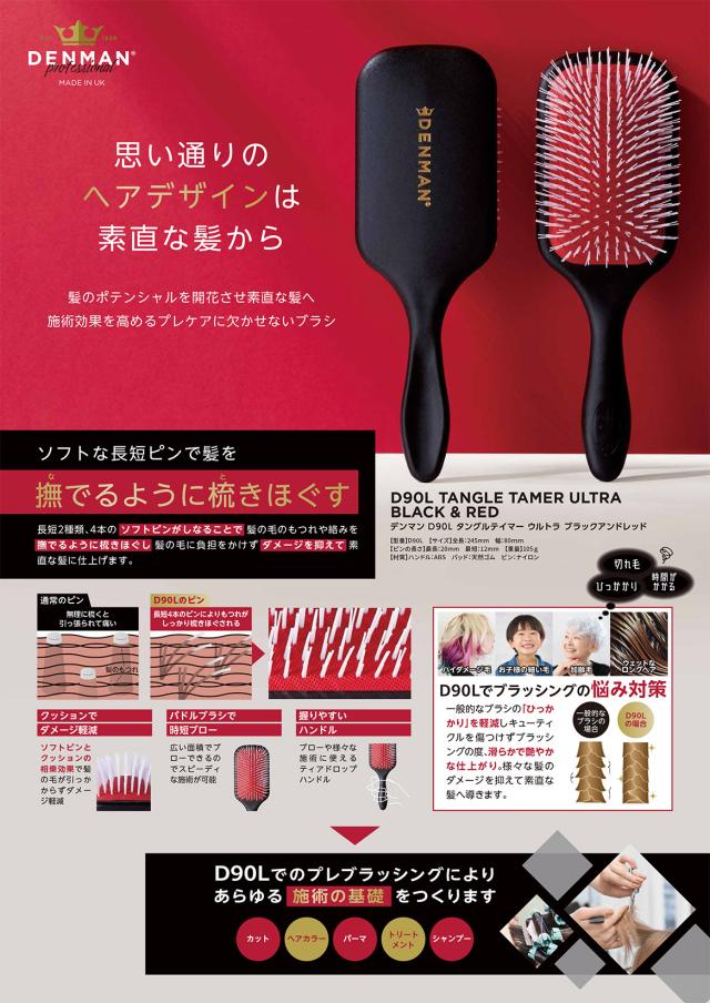 デンマンブラシ D90L タングルテイマー ブラックアンドレッド スタイリングブラシ ブロー ヘアブラシ ディングリングブラシ 業務用 プロ用 美容専売 美容室 理容室 理美容 床屋 バーバー サロン専売 美容専売 DENMAN デンマン ブラック&レッド トリコインダストリーズ