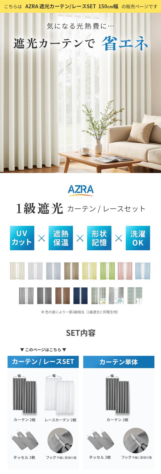 カーテン 4枚セット カーテン 遮光 1級 遮光カーテン 北欧 150cm幅 1級遮光 形状記憶 おしゃれ 洗える 厚手 ドレープカーテン UVカットカーテン レース 遮熱 幅150cm 丈 135 178 200 220 230 既製 サイズ 送料無料 AZRA アズラ