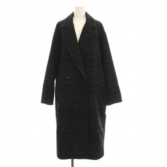 【中古】マウジー MOUSSY ロングコート チェック アウター 1 黒 青 カーキ 010DAG30-6490 /YM レディース