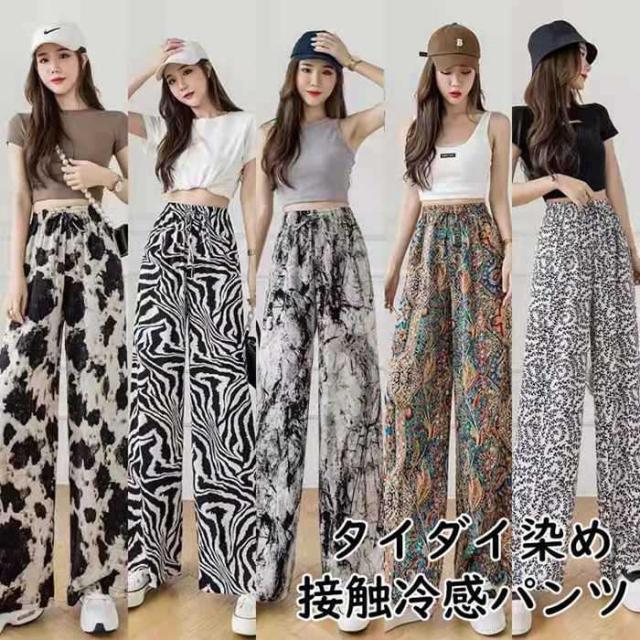 タイダイ染め 接触冷感 パンツ ワイドパンツ 柄パンツ レディース 冷感パンツ イージーパンツ カジュアルパンツ 夏