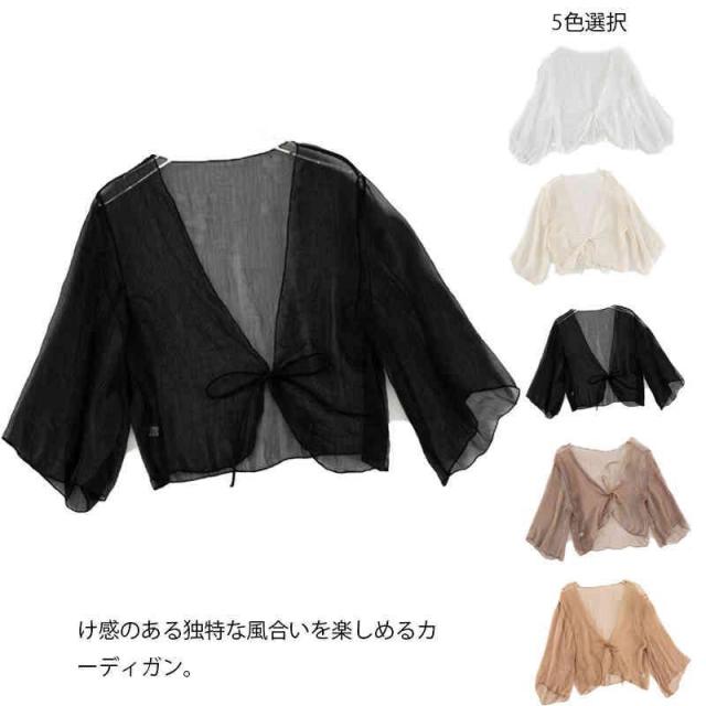サマーカーディガン ボレロ 半袖 カーディガン シフォン ショート丈 UVカットシアー レディース 冷え防止 冷房 羽織 春 夏 秋 リボン