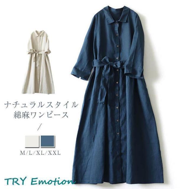 シャツワンピース レディース ロングワンピース 春 夏 5分袖 五分袖 折襟 ゆったり 体型カバー 綿麻 きれいめ カジュアル サマー 涼しい リネン
