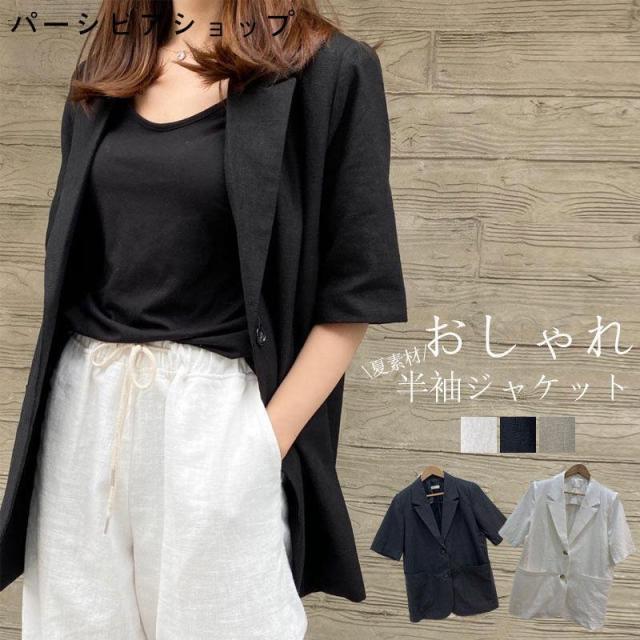 ジャケット レディース 夏 薄手 サマー ジャケット 半袖 おしゃれ テーラードジャケット 夏用 綿麻 涼しい サマージャケット アウター ミドル丈 トップス 半そ