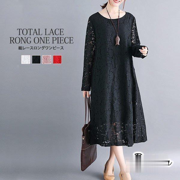 ワンピース 総レース ドレス ロング丈 長袖 上品 春 夏