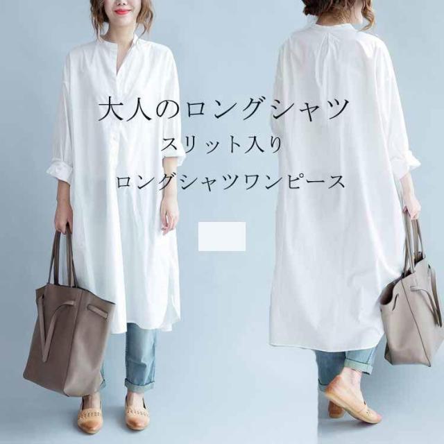 チュニック ロングシャツ シャツワンピース スリット ロング ワンピース 夏 羽織り 薄手 長袖 シャツワンピ レディース チュニックワンピース ブラウス ロングワ