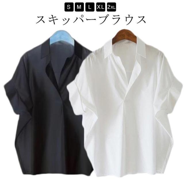 ゆったり ブラウス ドルマン 抜襟 オフィス レディース シャツ ブラウス 半袖 ブラウス 抜け感 夏 トップス カジュアル きれいめ 20代 大人