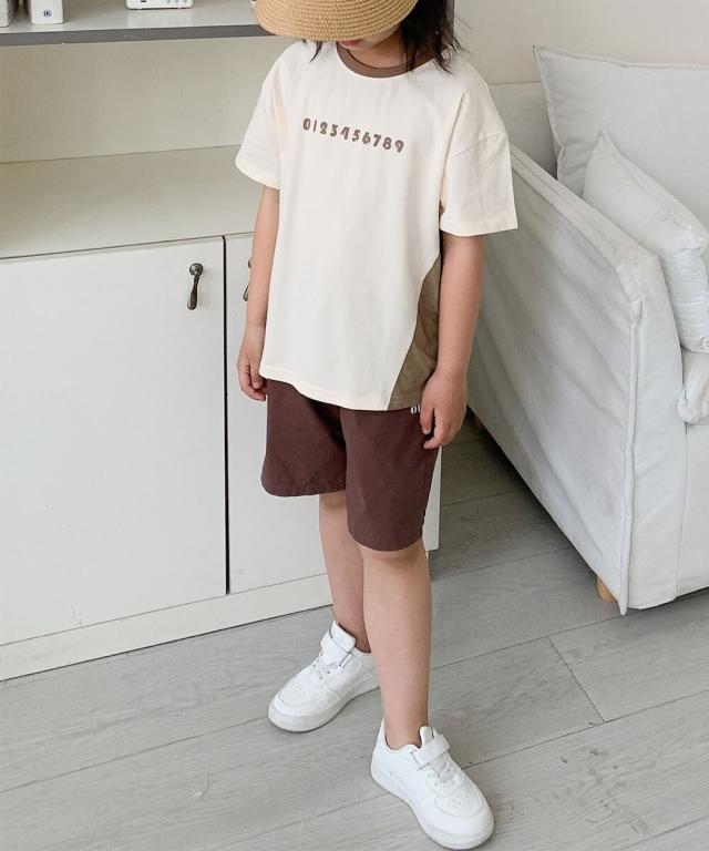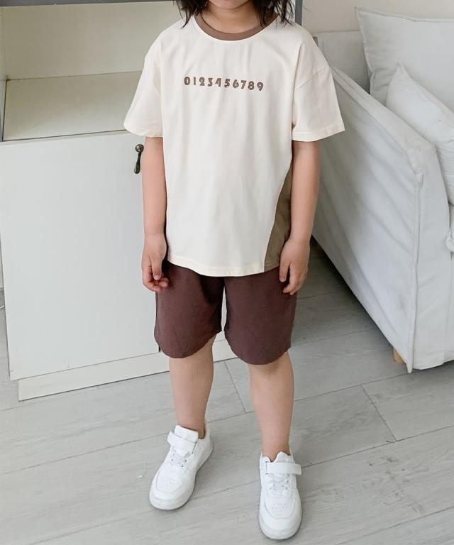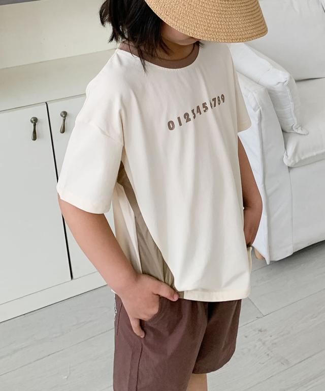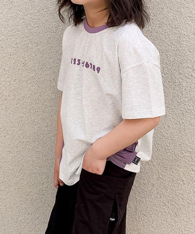 【aimoha−KIDS−】キッズ 配色ナンバープリントTシャツ