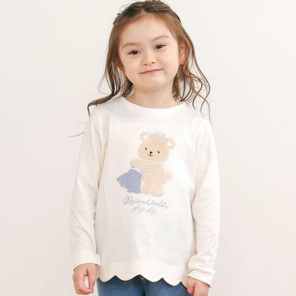 裾がスカラップになっているのがカワイイ女の子用長袖Tシャツ。
