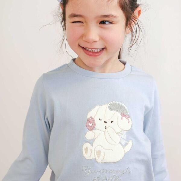 スラップスリップ(SLAP SLIP)/アニマルクマウサギイヌネコモチーフパッチ刺しゅう裾スカラップTシャツ(80~130cm)