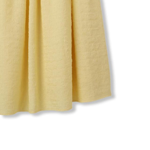 ドレスライクなたたずまいなのにウエストはぐるりゴム仕様でイージーな履き心地です。