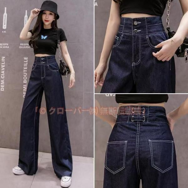 スタイルはよく見えるハイウエストデニムワイドパンツ