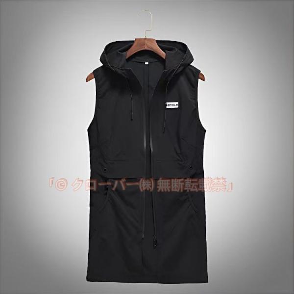 パーカー メンズ ロング丈 ノースリーブパーカー ジップアップパーカー ベスト ロングパーカー クローバー株式会社 速乾 ジップパーカー 半袖パーカー 夏パーカー おしゃれ
