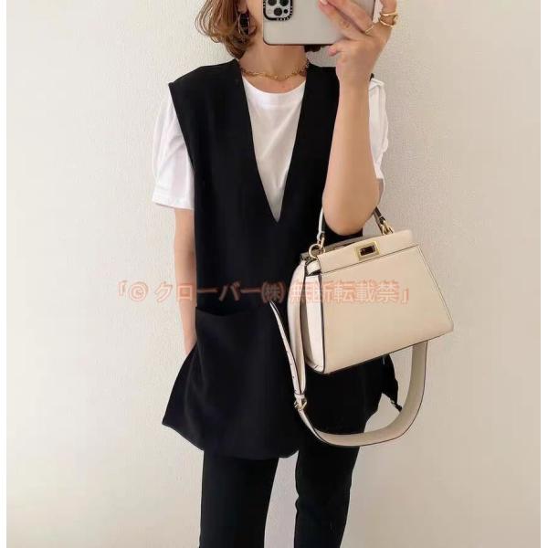 ベスト レディース 薄手 深めvネック ノースリーブ トップス 夏服 クローバー株式会社 フロントポケット サイドスリット プルオーバー 重ね着風 レイヤード風 黒ベスト 30代40代50代
