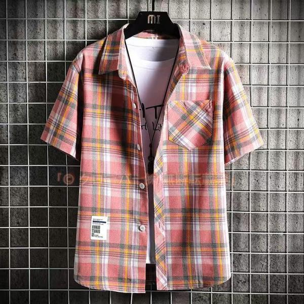 ネルシャツ メンズ 半袖シャツ カジュアルシャツ トップス チェックシャツ おしゃれ 夏物 半袖 胸ポケット アロハシャツ 半袖 スリム ビジネス カジュアル 通勤 通学 ボタン留め チェック柄 ロゴ メンズシャツ 夏 夏服 メンズファッション