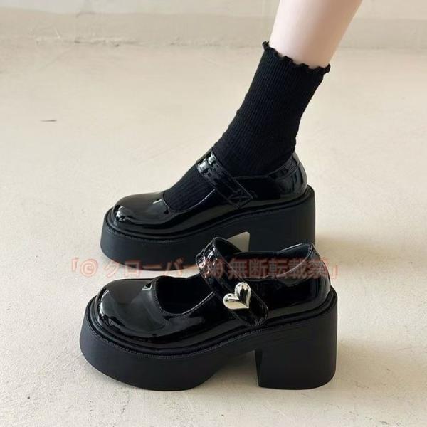 太ヒールパンプス 歩きやすい 厚底シューズ チャンキーヒール PUレザー靴 疲れない おしゃれ ドレスシューズ メイド靴