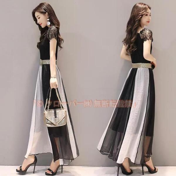 ありパーティードレスロング丈結婚式ドレスワンピース袖あり大きいサイズバイカラー個性的おしゃれロング半袖10代20代30代春夏かわいい クローバー株式会社