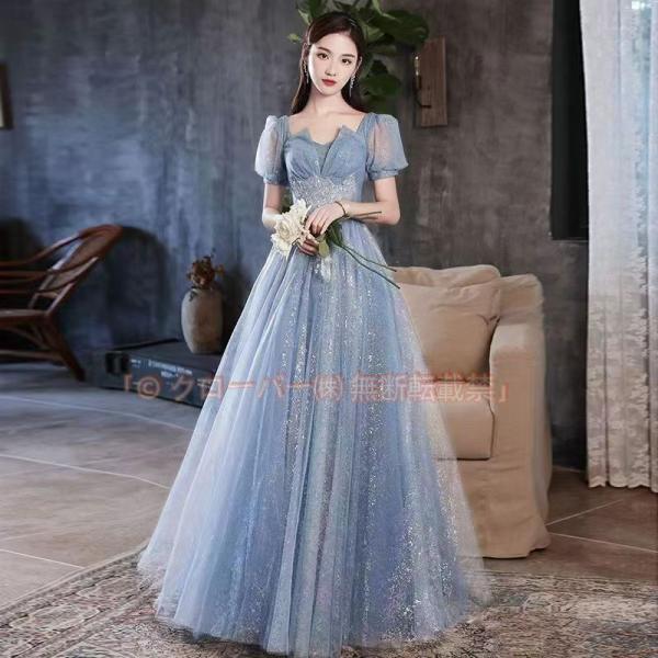 結婚式ドレス 二次会ドレス ブルー ピンク ワイン赤 イブニングドレス ロングドレス クローバー株式会社 パフスリーブ 発表会ドレス キラキラドレス 演奏会ドレス