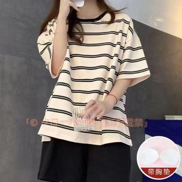 半袖/長袖 カップ付き tシャツ 上下セット ロングパンツ パッド付き 短パン クローバー株式会社 ルームウェア 春 夏 秋 部屋着 ボーダー柄 ナイトウェア レディー