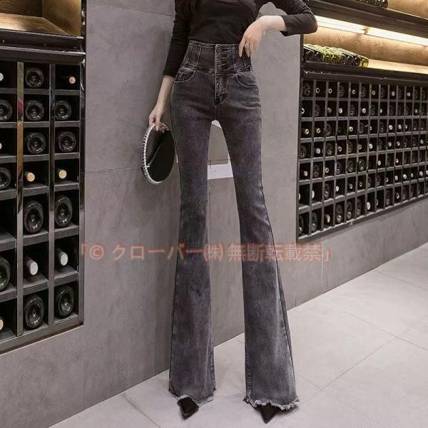 細身シルエット ジーンズ ジーパン 美脚 脚長デニムブーツカット レディース デニム ジーンズ ジーパン ハイウエスト フレア ベルボトム デニムパンツ ズボン ロングパンツ オフィスカジュアル 春 夏 秋 スリム ブラックデニム