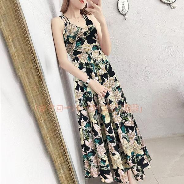 ワンピース ノースリーブ 春 夏 レディース マキシワンピース 花柄 クローバー株式会社 大人 ラウンドライン ロング エキゾチック オシャレ 着痩せ 結婚式ドレス