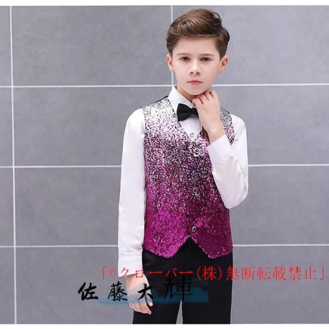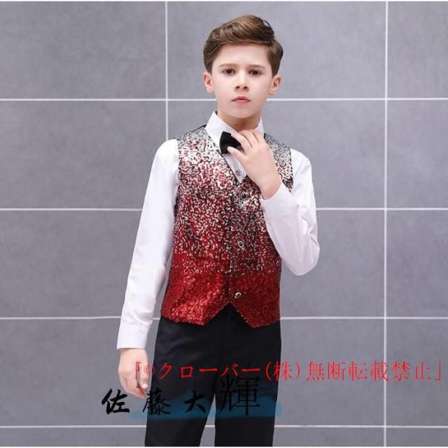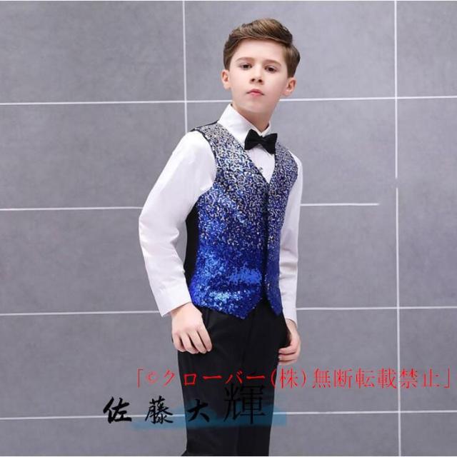子供スパンコールベスト グラデーション 男の子舞台ステージ衣装 舞台衣装 合唱団 団体服 学園祭 クローバー株式会社 司会者 フォーマル 子供礼服 写真撮影 結婚式 演歌 新年会 マン