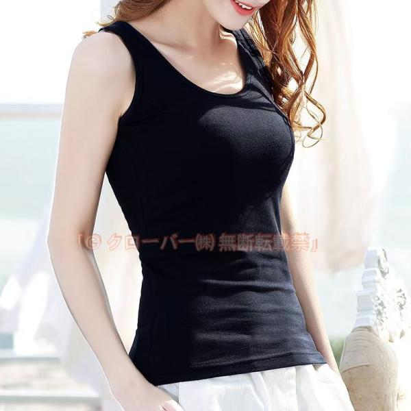 ・柔らかな厚めの一体型 カップ付きタンクトップ (取り外し不可)、暑い夏もブラジャーなしでこれ1枚で快適