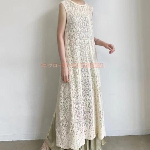 ロングベスト レース ベスト ノースリーブ レディース 花柄 刺繍 クローバー株式会社 バックスリット 重ね着 不規則 透かし編み 個性的 コーデ
