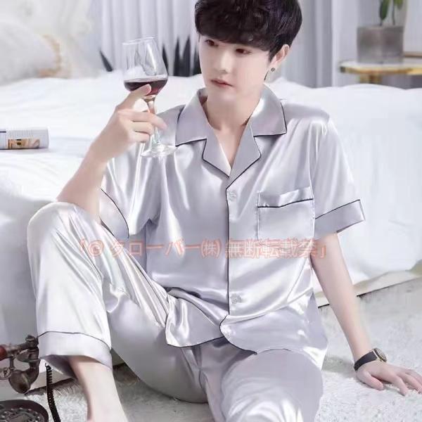 シルク パジャマ メンズ 半袖 前開き 上下セット 春夏 秋