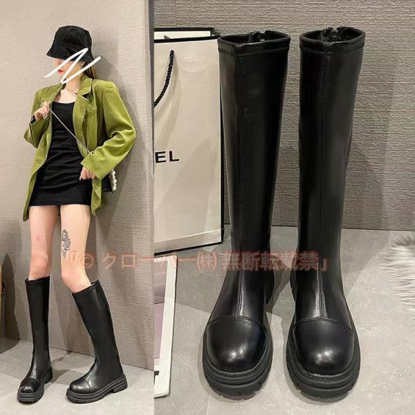 ジョッキーブーツ ニーハイブーツ ロングブーツ レディース 膝丈 レディース ブーツ 靴 クローバー株式会社 美脚 4CM ローヒール 太ヒール カジュアル シンプル ブーツ 痛くない