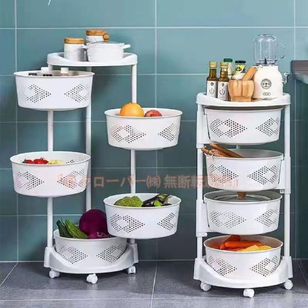 円形回転式野菜収納ラック 360度回転 移動キャスター 収納ラック 台所 着陸 多層回転ラック クローバー株式会社 果菜バスケット 収納ラック 取り外し可能 プッシュホイール付き 収納