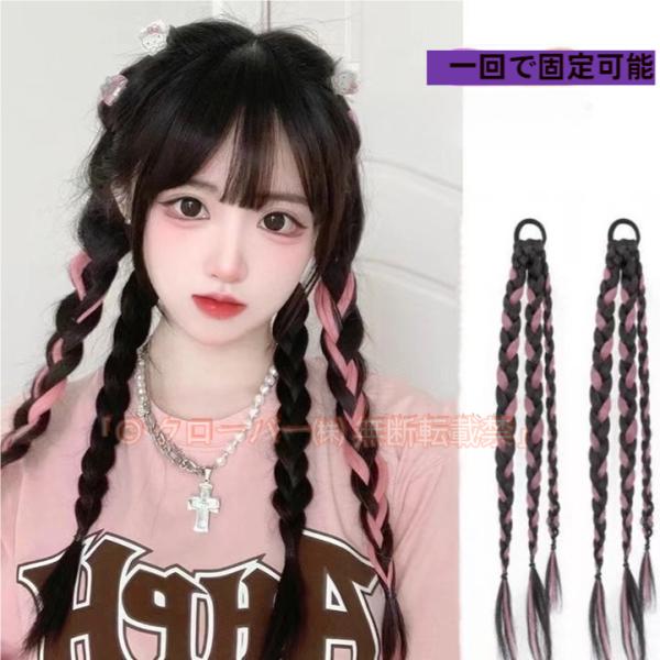エクステ 三つ編み エクステンション ヘアゴム レディース つけ毛 部分ウィッグ クローバー株式会社 ヘアアレンジ 3連 編み込み 簡単装着 ポイントウィッグ ロング お