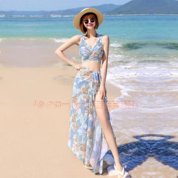 夏 タンキニ 水着3点セットパレオ付き 韓国 クローバー株式会社