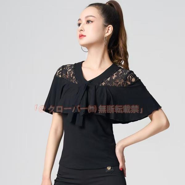 社交ダンス衣装 トップス 可愛い レース フリル Tシャツ ラテンダンス クローバー株式会社 衣装 レッスン着 フラメンコ 衣装 モダン ダンスウェア 社交ダンス 衣装 練習着 コーラス