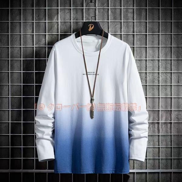 Tシャツ メンズ 長袖 おしゃれ ロングtシャツ tシャツ グラデーション クローバー株式会社 切り替え クルーネック 秋 秋服