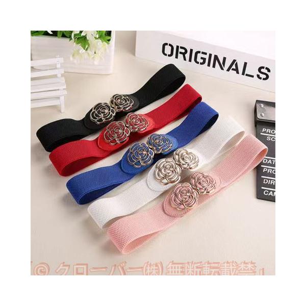 太ベルト ウエストバンド 幅広 ワイド ゴム バックル アクセント クローバー株式会社 伸びる 太め 太い レディース バラ 薔薇 おしゃれ 大人 可愛い かわいい