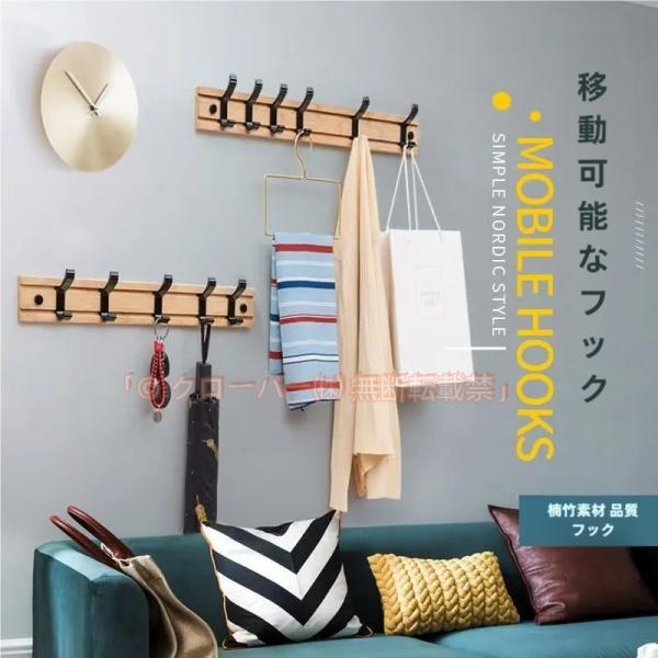 5連 ウォールハンガー コートハンガー 壁掛け フック 木製 4連 クローバー株式会社 壁面収納 可動式フック 壁掛けハンガー 玄関収納 洋服掛け コート掛け ランドセル