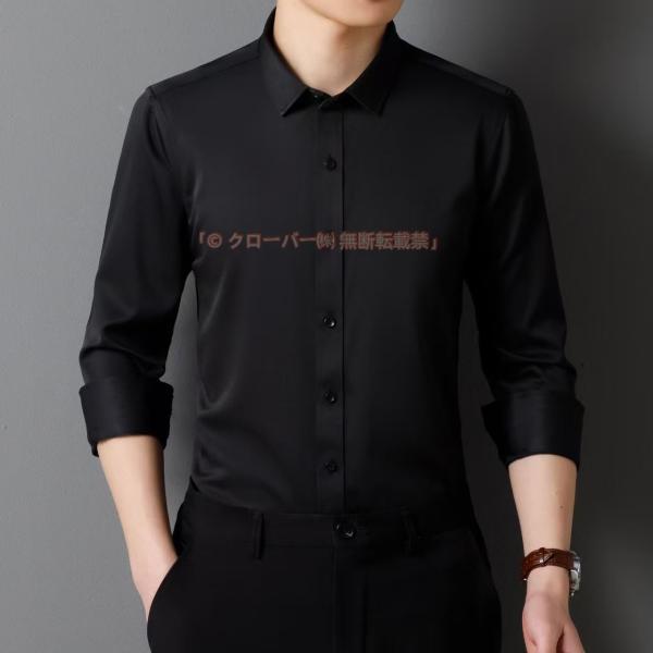 メンズ シャツ 長袖 カジュアル ワイシャツ 大きいサイズ 無地 クローバー株式会社 ビジネス スリム 黒シャツ 赤シャツ