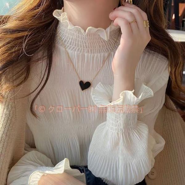 ブラウス フリル ハイネック シフォン シアー トップス レディース クローバー株式会社 シャツ レトロ メロウ 長袖 インナー フェミニン 大人 かわいい オフィス カジュアル